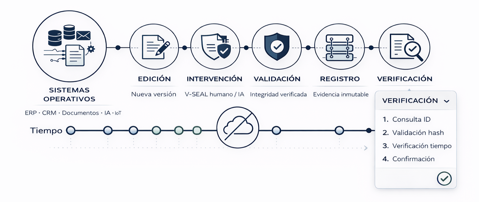 Es aquí donde entra nuestra tesis estratégica: el Governance-by-Design (incrustar la gobernanza directamente en la infraestructura técnica). Y para materializarla, hemos impulsado la creación del estándar definitivo: V-Proof Protocol.