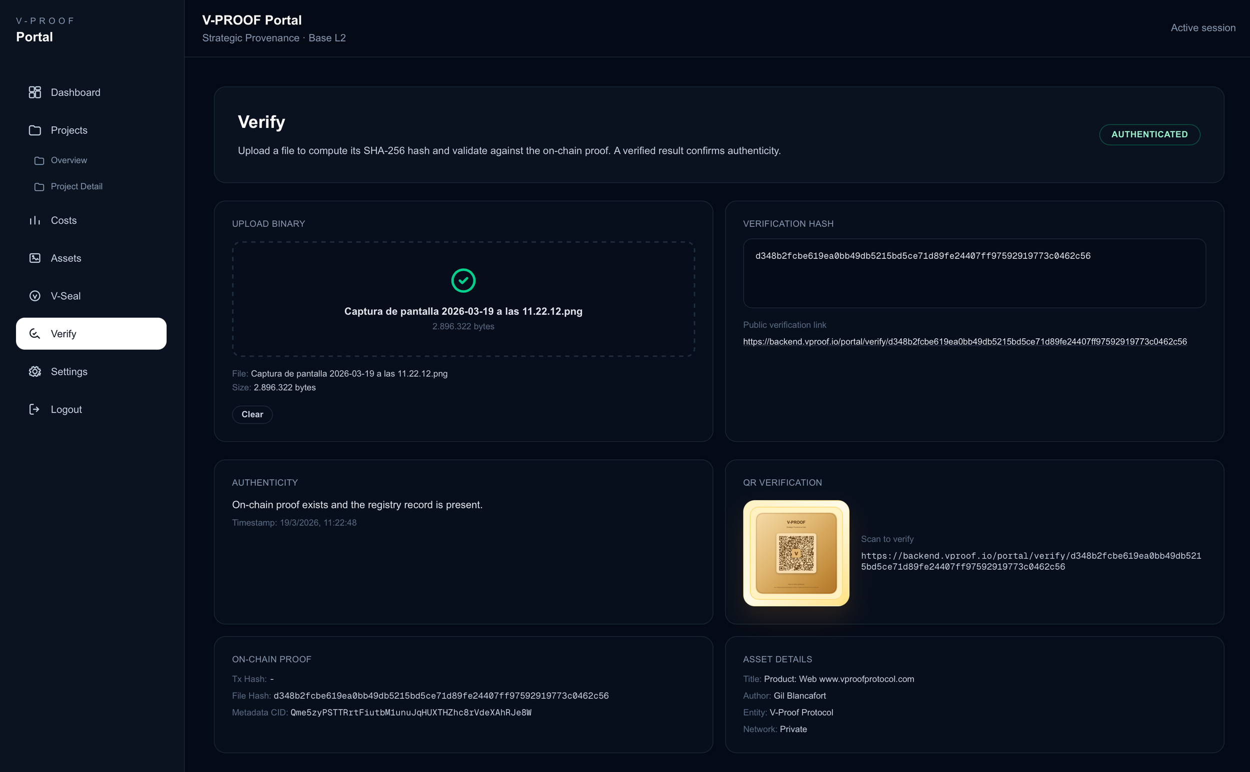 - Estado de Verificación: AUTHENTICATED (On-chain proof exists and the registry record is present)