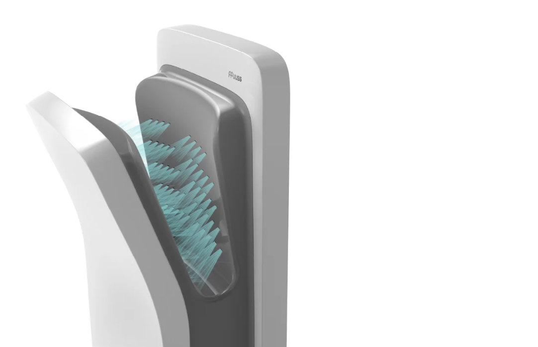 2. Innovación de Producto (The Air Hug): Colaboramos en la definición de la experiencia de usuario (UX) física. El resultado son 108 salidas de aire diseñadas con precisión milimétrica. No secan por impacto, secan por envolvimiento. Creamos el concepto "Air Hugs" (Abrazos de aire), una narrativa que redefinió la interacción usuario-máquina.